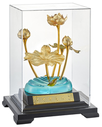 櫥窗實務尺寸17*14*22CM本產品採用999純金,將高貴的純金箔與陶瓷搭配經創意構思、確定整體效果,再運用傳統塑模,剪、刻、捏、膠等不同手法,經過繁複的工序再嚴謹製作而成。立體金箔櫥窗是由專業設計師精心設計而成,無論是畫面的安排、產品的表現、處處可見巧思,在您欣賞作品之餘亦能體驗立體金箔產品置入櫥窗內的藝術價值和觀賞價值,更是您自用送禮饋贈的最佳選擇。專利字號第162157號,經工業技術研究院檢驗認證,工服編號0001B071登錄編號0001CA26。我們免費提供落款服務,您只要把內容傳真至:02-29285026 E-mail:longchi.gold@msa.hinet.net 我們將會連同產品和落款一起寄給您外包裝為灰色紙盒內襯錦布運送方式商品價格已含稅金、運費及包裝,我們確認訂單後7天內使用郵局掛號方式寄出。請在訂購單上詳細確認收件人地址電話退換貨原則若您對我們的產品不滿意,在收到商品之後您有七天鑑賞期(首飾類不佩戴情況下)您可先以電話(02)29276825跟客服人員聯絡確認更換其他商品,或將商品退回(產品及包裝盒,連同發票)我們保證原款(扣除運費)奉還。有以下情況者恕不退換貨1. 因消費者不當的人為因素導致商品毀損、髒污。2. 商品、發票、附配之佩件、包裝盒不齊者。3. 超過7天鑑賞期(從顧客收貨日起至貨品寄出日止