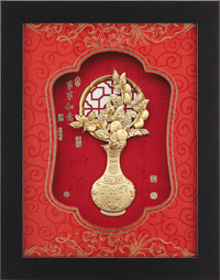 外徑27*34CM本產品採用999純金,將高貴的純金箔經創意構思、精心設計、確定整體效果,再運用傳統塑模,剪、刻、捏、膠等不同手法,經過繁複的工序,嚴謹製作而成。在您欣賞作品之餘亦能體驗博大精深的民族藝術。立體金箔畫不僅有很有藝術價值和觀賞價值,更是您自用送禮饋贈的最佳選擇。