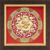 純金箔圓型窗花藝術立體金箔畫-祥龍獻瑞